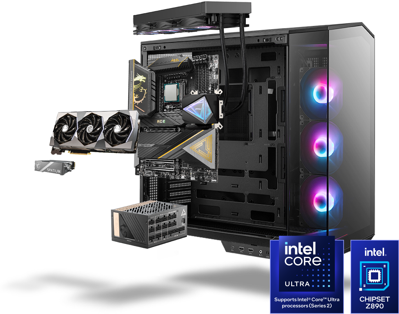 6 COMPONENTEN: [ Moederbord + Videokaart ] + SSD + Voeding + Behuizing + Liquid Cooling